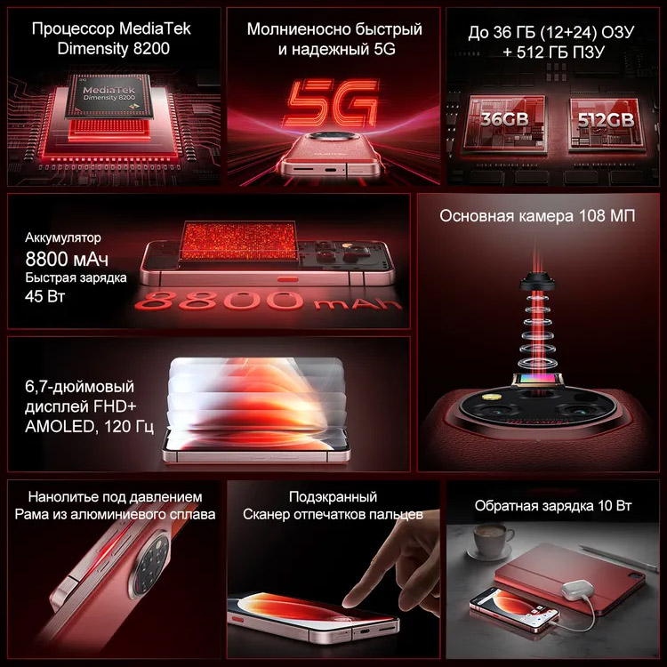 - Аккумулятор 8800 мАч + быстрая зарядка 45 Вт