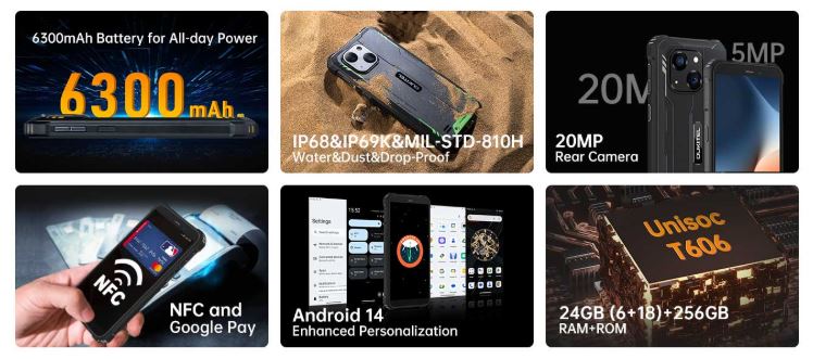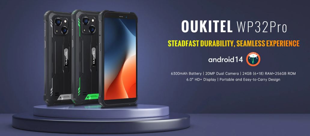Oukitel WP32 Pro - защищённый смартфон с батареей 6300 мАч, процессором Unisoc T606, камерой 20 Мп, памятью 6(+18) 24 ГБ/ 256 ГБ
